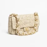 Virginie Viard作为香奈儿创意总监设计,香奈儿22手袋以2022年诞生年命名。推出于2022春夏系列第二幕,是款休闲时尚的束口袋,适合日常使用。尽可能用耐用皮料打造,轻盈无比。外观极简却舒服。包身有菱格纹,无鼓胀感。顶部配编织链条皮肩带,带复古吊饰。包中央印小写“Chanel”标志。22手袋适合日常背,磁扣开关。束口设计像钱包,有1个主隔层、1个内拉链袋 & 可拆卸小袋。